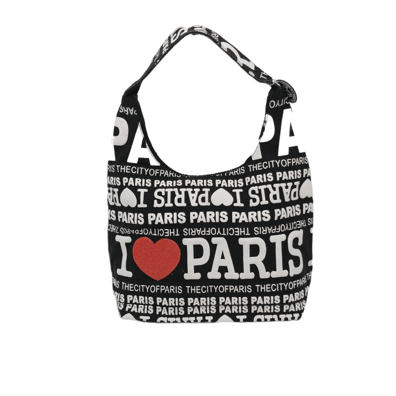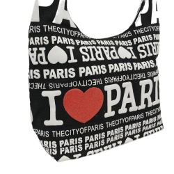 Go for Parisian style with our "I Love Paris" bag. Made from sturdy canvas, this black and white bag proudly displays "I Love Paris" surrounded by a swarm of "Paris" and "The City of Love". Spacious (48x37cm) and practical with its inside pocket, it embodies love for the City of Light. A chic accessory for any fan of fashion and the French capital.