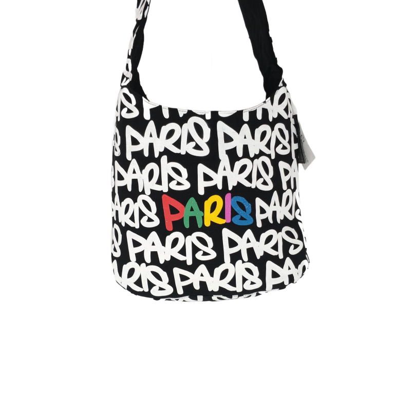 With its generous dimensions (30 x 36 x 13 cm), this shoulder bag is an ally for all your adventures, while remaining compact and handy. The inscriptions "Paris" on the robust canvas reflect the vitality and urban art pulsating in the heart of the metropolis. Whether accompanied by your books, tablet, or flower market finds, it will carry your essentials with inimitable flair.