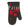 Set cuisine Paris : 1 gant + 1 manique motif Nœud Papillon. Confort matelassé, boucle d’accroche. Gant 29×15 cm, manique 20×20 cm.